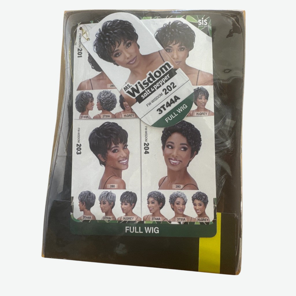 Whether you're looking to enhance your everyday style or make a statement at a special event, the MS WISDOM SALT AND PEPPER FULL WIGS is your go-to accessory. Embrace your inner wisdom and elegance today!
